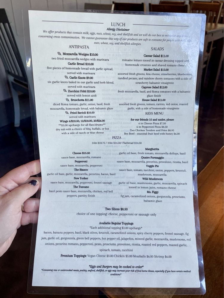 garlic oil base, mushrooms, garlic, mozzarella, spinach, lemon juice, pecorino romano cheese