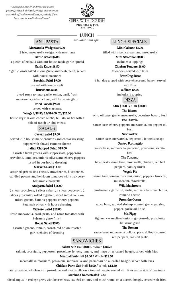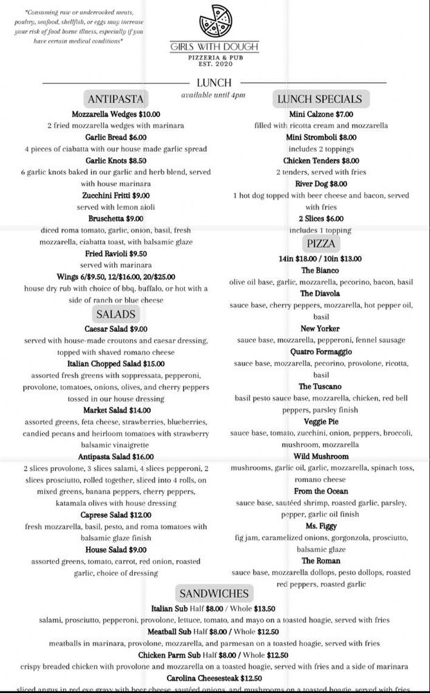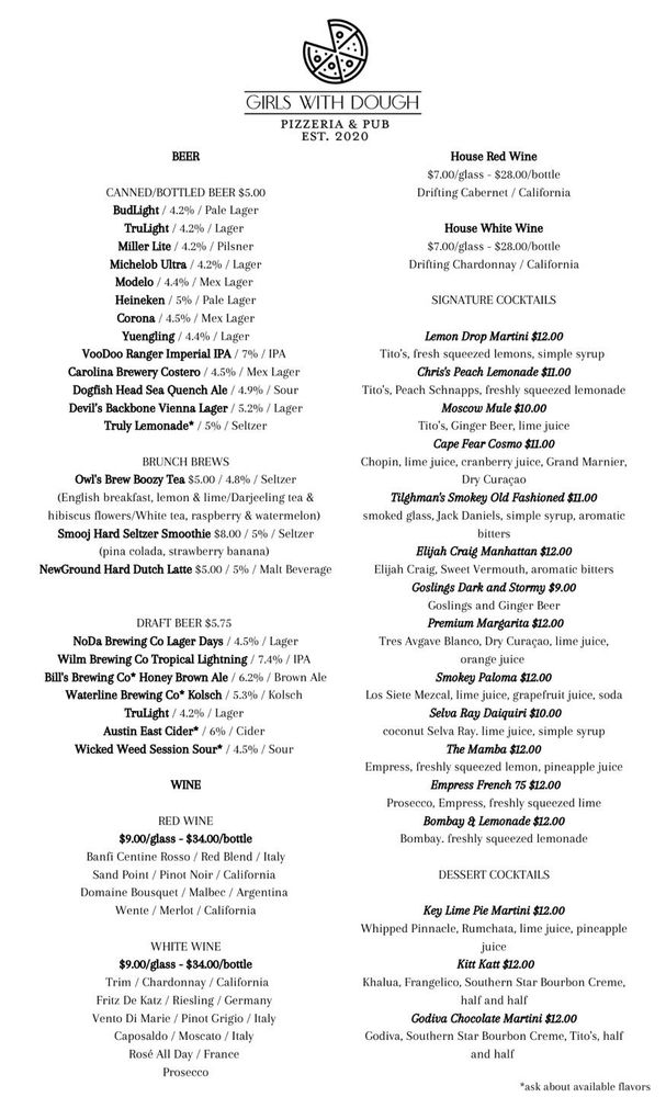 Girls With Dough is a dessert and pizza spot in Wilmington, offering handcrafted pizzas and Italian-inspired dishes made with fresh ingredients and high-quality dough. Their unique pizzas like the Ms. Figgy, featuring fig jam, caramelized onions, gorgonzola cheese, and prosciutto, offer a balance of sweet, savory, and tangy flavors. The restaurant has a welcoming atmosphere with views of the Cape Fear River, making it a great spot for families. Customers praise the perfect crust, delicious toppings, and excellent service. With a Saturday brunch option, diverse menu offerings, and a kid-friendly environment, Girls With Dough is a must-visit for those looking for a top-notch pizza experience in Wilmington.